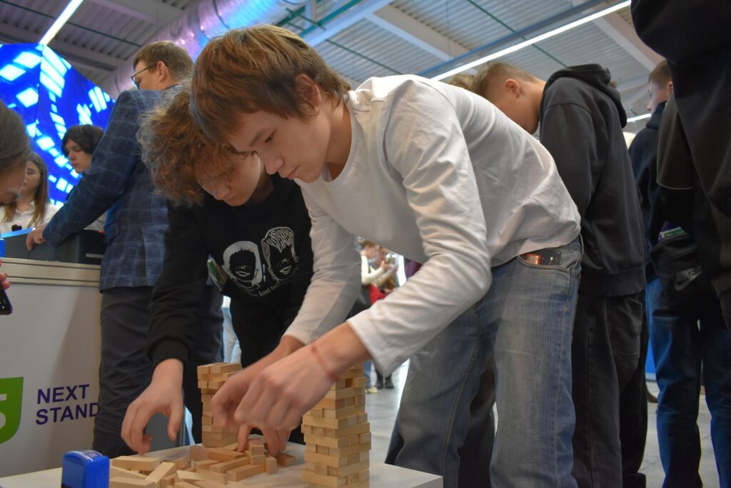 Стенд NS назывался «Школа супергероев нефтегаза» и демонстрировал возможности для самореализации, которые получают молодые специалисты в Нефтьсервисхолдинге: в профессиональной деятельности, в творчестве, спорте и инновациях. Гостей ждала интерактивная программа, которая включала «нефтегазовый» квиз, командные инженерные задания и виртуальное бурение скважины на уникальном тренажере-имитаторе от Учебного центра Нефтьсервисхолдинг.